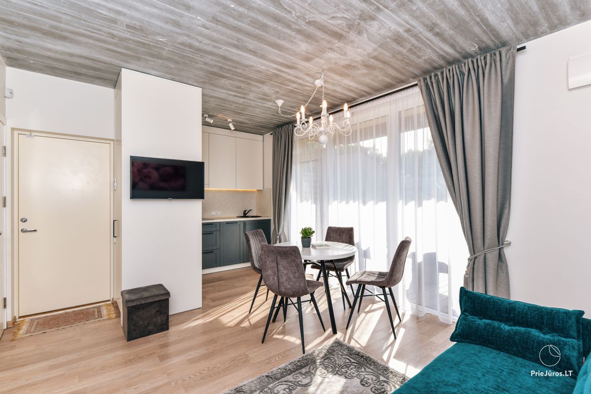 Nuomojami dviejų kambarių apartamentai pirmajame aukšte "Čiki puki pajūrys" kvartale, Kunigiškėje, Kontininkų g. 3B
