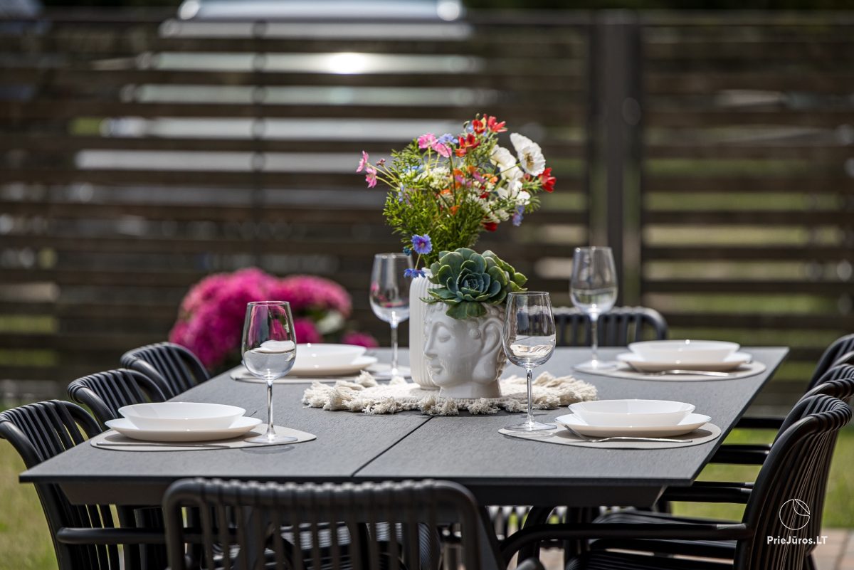 - Privati terasa kiekvienam namui. Mėgaukitės pusryčiais gryname ore, vakarais su šeima ar jaukiais pasisėdėjimais su draugais.