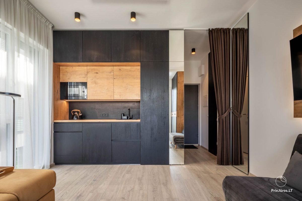 Studio tipo butas Kunigiškiuose siūlo apgyvendinimą su privačiu baseinu, nemokamu belaidžiu internetu ir nemokama privačia automobilių stovėjimo aikštele svečiams, atvykstantiems automobiliu. Šie apartamentai yra 2022 m. statybos pastate, uždarame kvartale. Jame sezono metu (Birželio 1 d. - Rugsėjo 1 d.) veikia lauko baseinas. Taip pat yra pirtis/kubilas/grilis, kuriuos galima išsinuomoti.