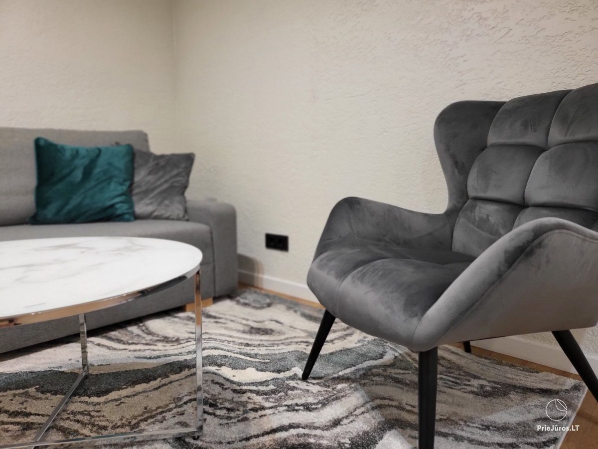 Apartamentai nuomojami su visais reikalingais baldais ir buitine technika, todėl galėsite mėgautis patogiu ir nerūpestingu poilsiu.