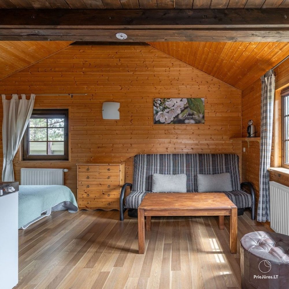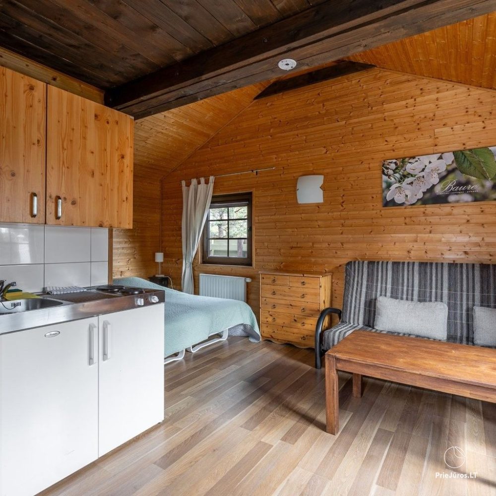 Namelis Nr. 5 – klasikinis jaukus medinis namelis, išsaugojęs pirmojo „Baure“ stilių. Jei vertinate paprastumą, ramybę ir autentišką poilsio atmosferą, šis namelis – kaip tik jums.