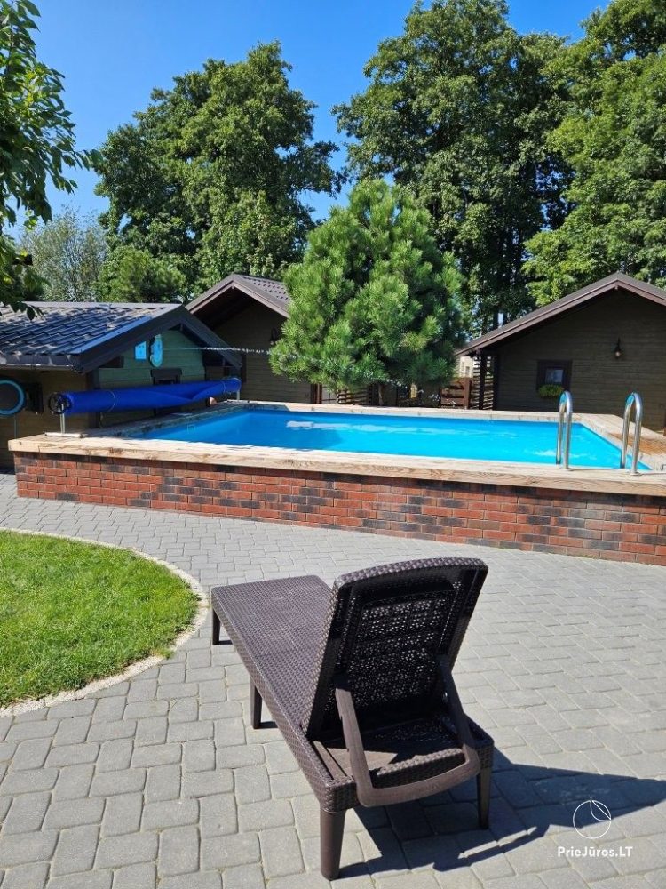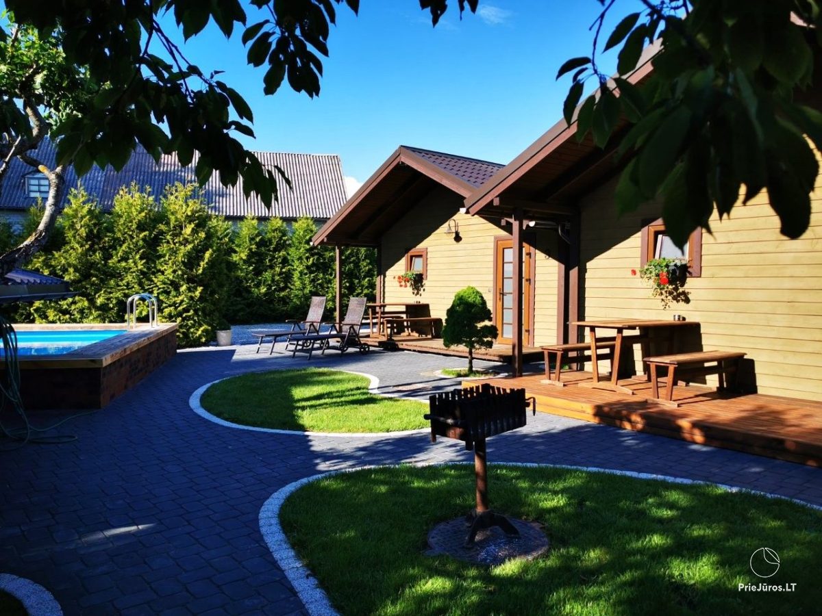 Medinis, šiltas ir jaukus, su lauko terasa, keli žingsniai iki mažojo baseino.