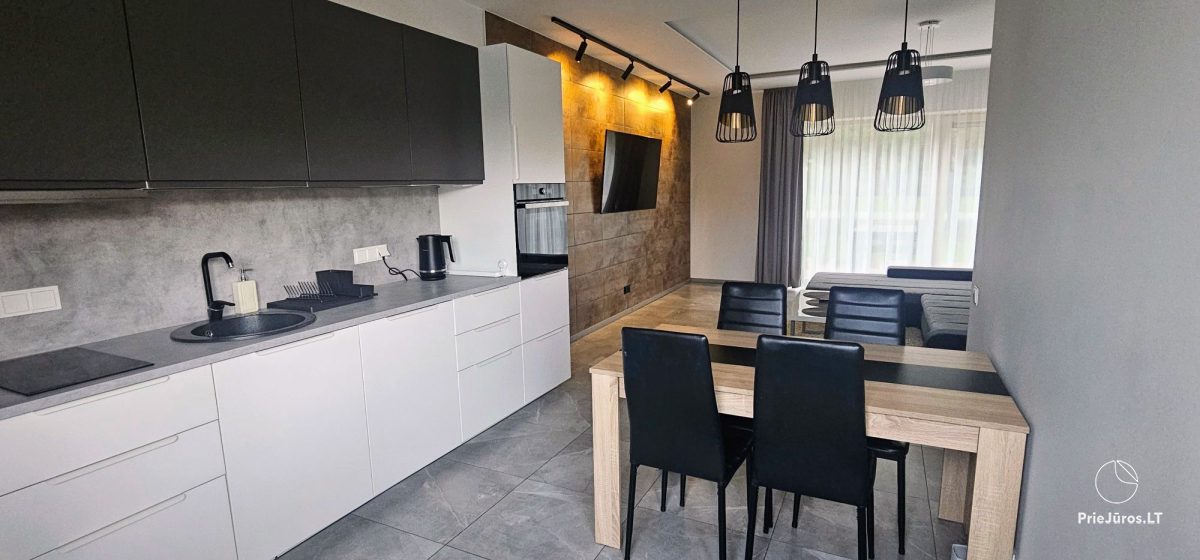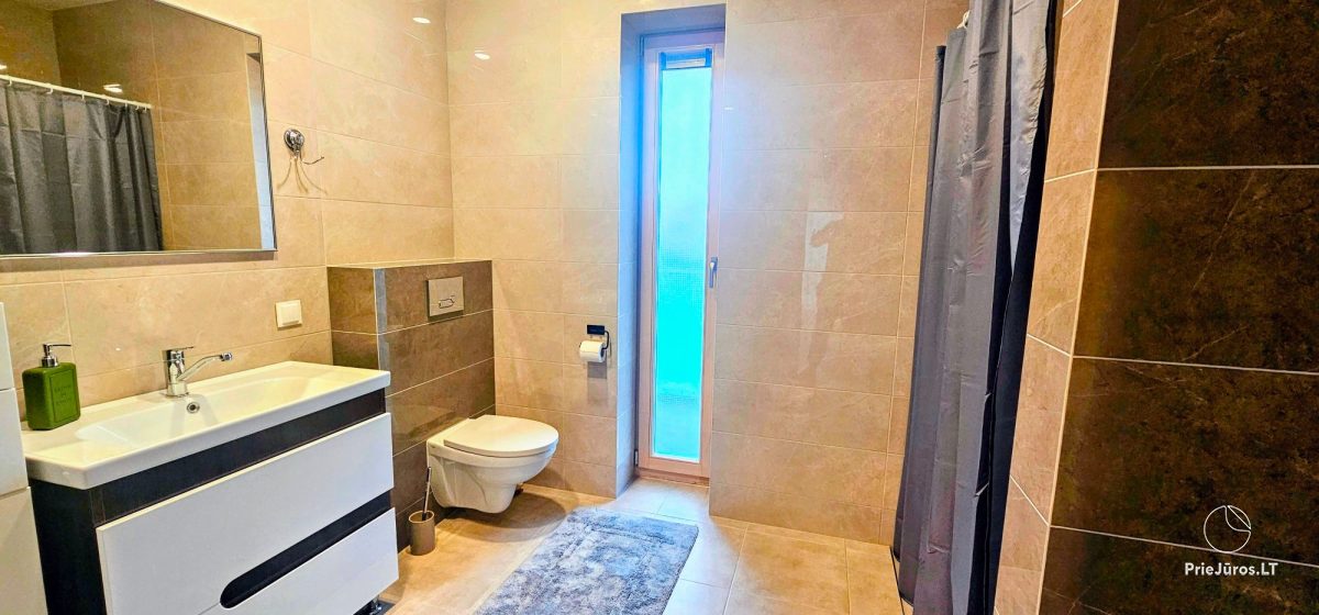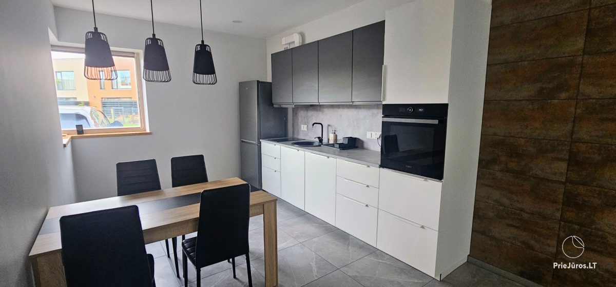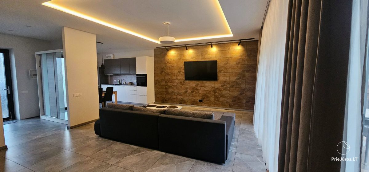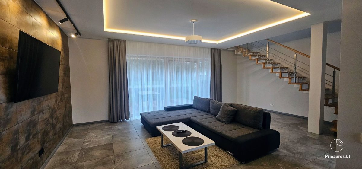 Išnuomojamas erdvus, modernus kotedžas Šventojoje netoli Baltijos jūros.