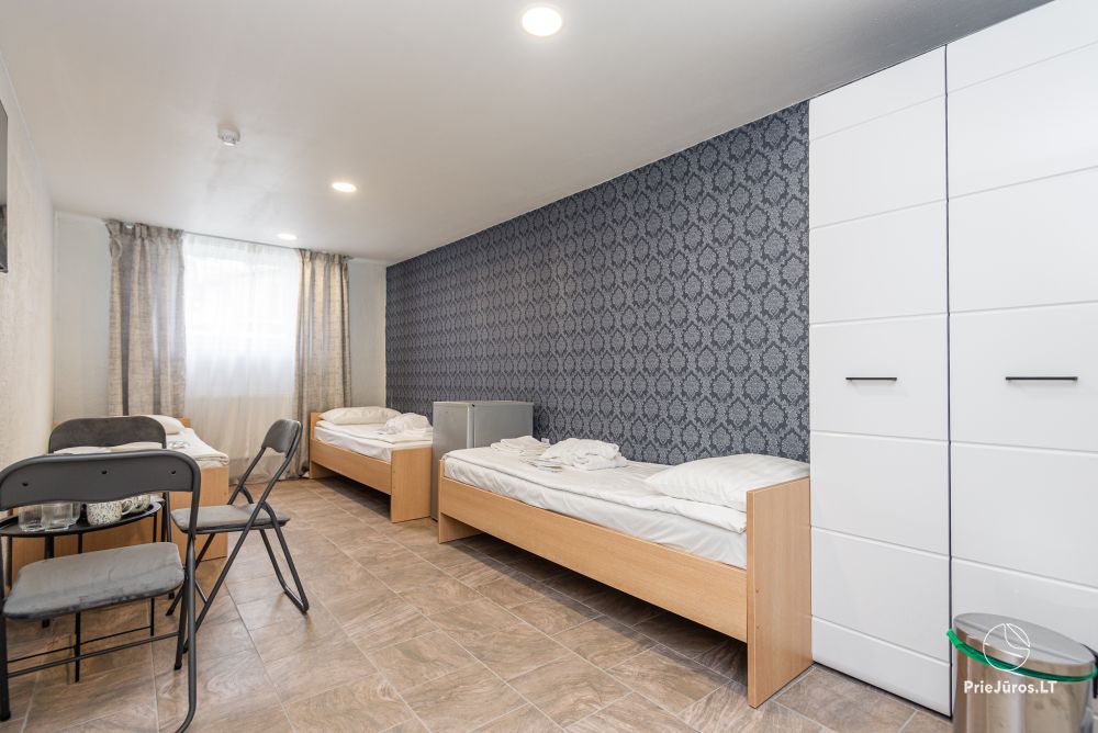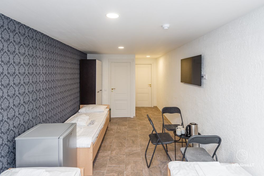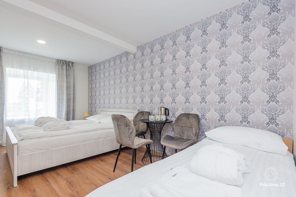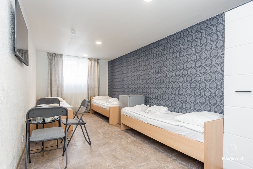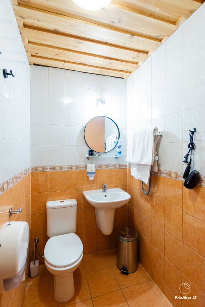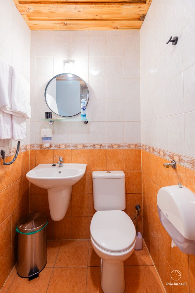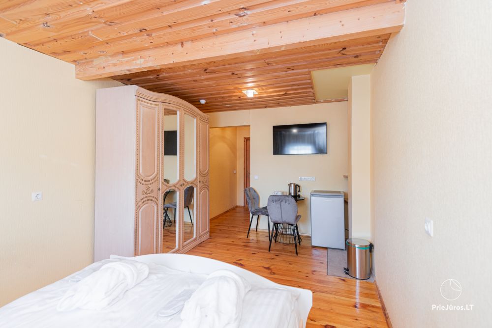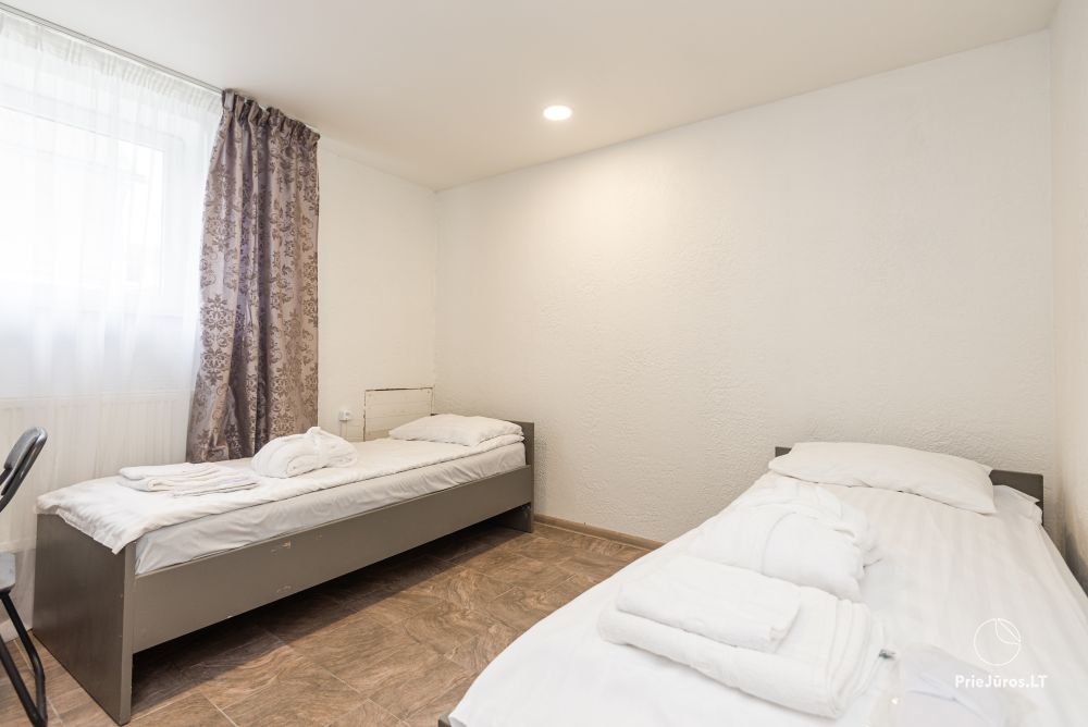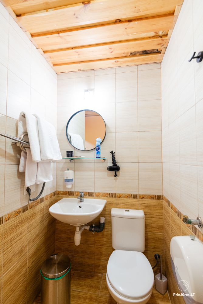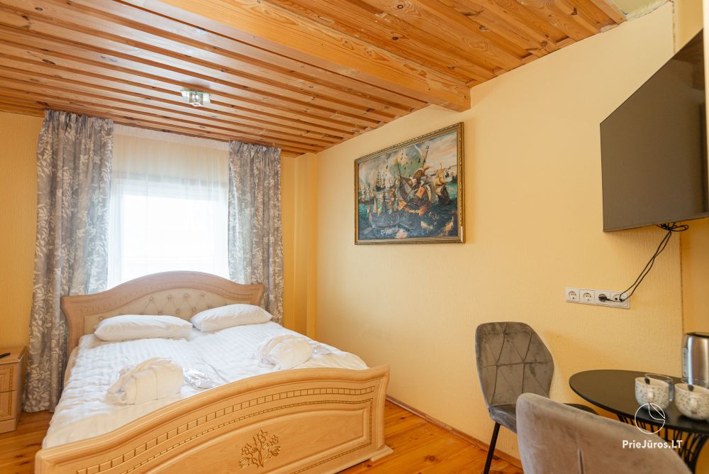 Svečių namuose yra 8-ni dviviečiai kambariai su atskirais dušais bei WC, 2 numeriai yra su dvejais miegamaisiais, jame gali apsistoti nuo 3-jų iki 5-kių asmenų. Taip pat yra pigesnių numerių cokoliniame aukšte su atskirais dušais bei WC, SMART TV, šaldytuvais su šaldymo kameromis. Turime 9-nis triviečius kambarius su atskirais dušais bei WC, SMART TV, šaldytuvais su šaldymo kameromis. Kai kuriuose kambariuose yra kondicionieriai ir balkonai.