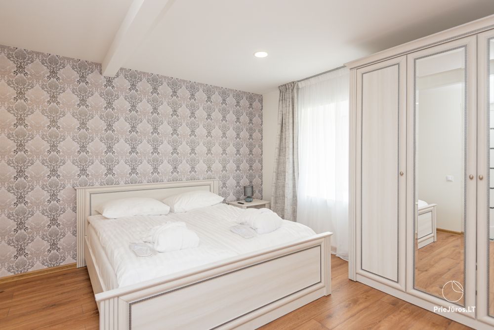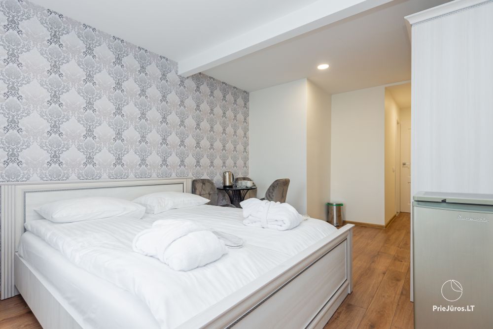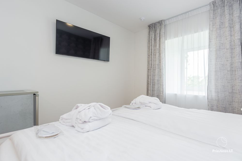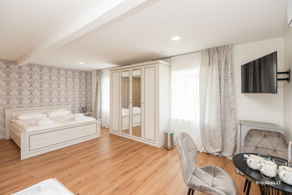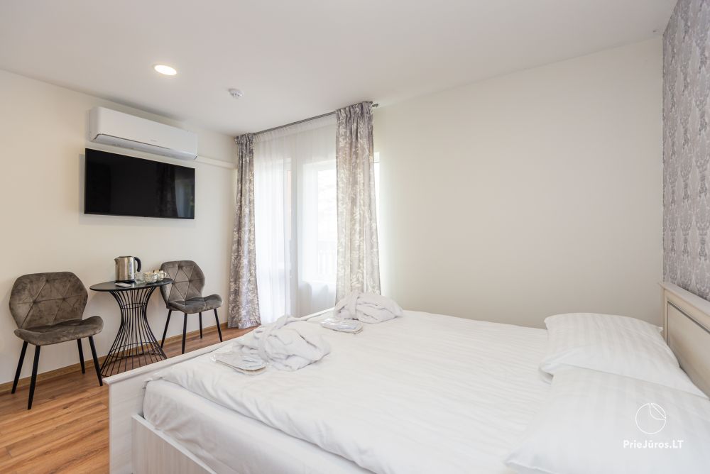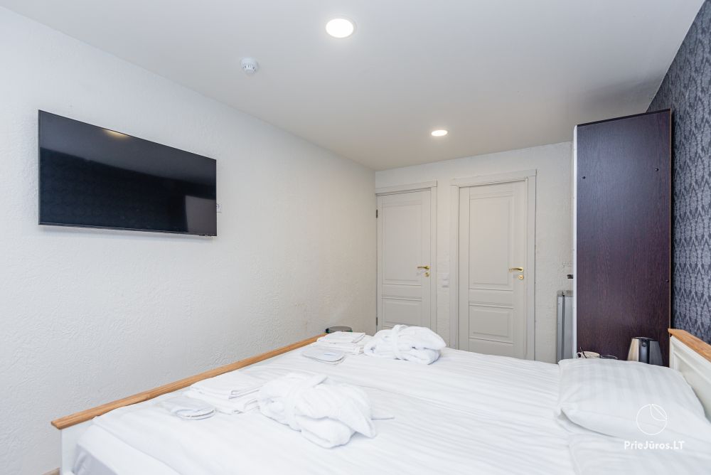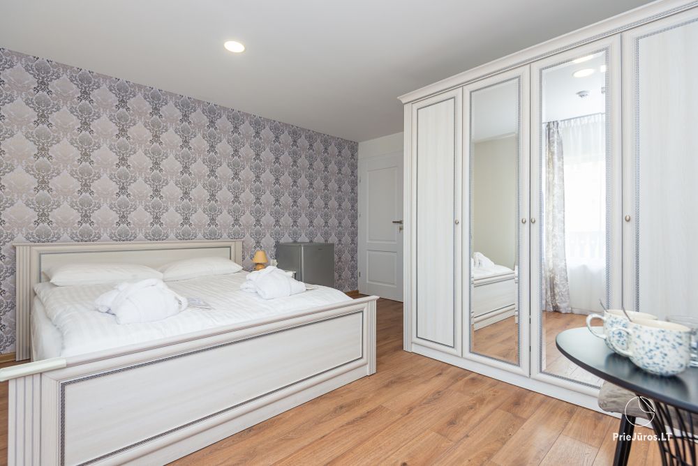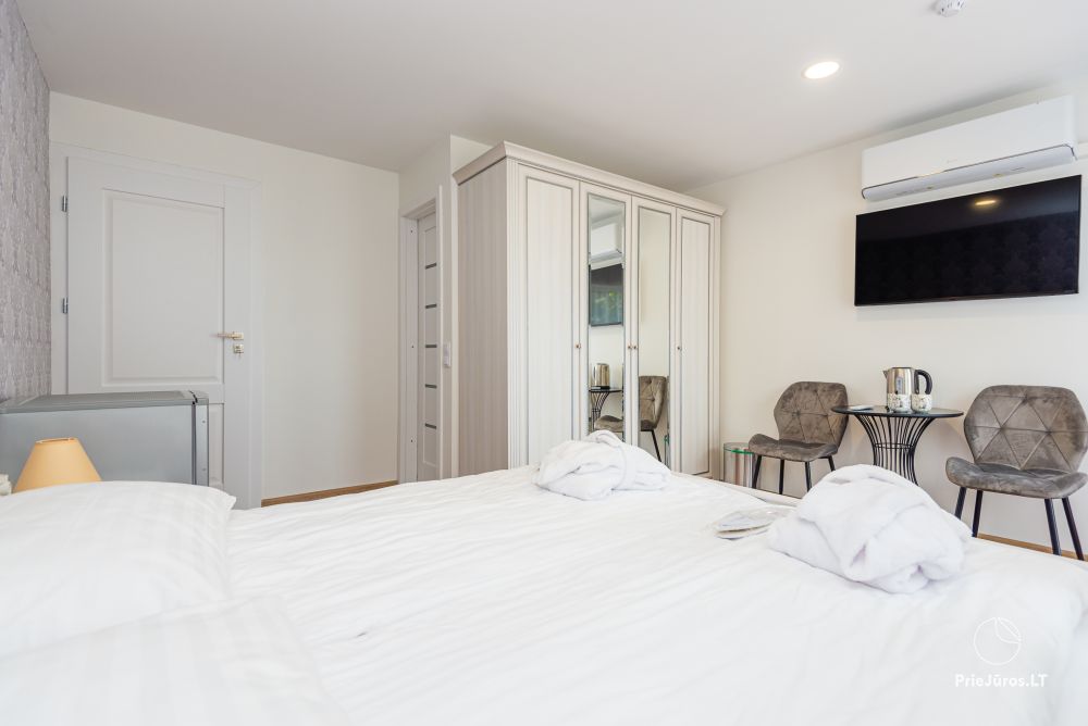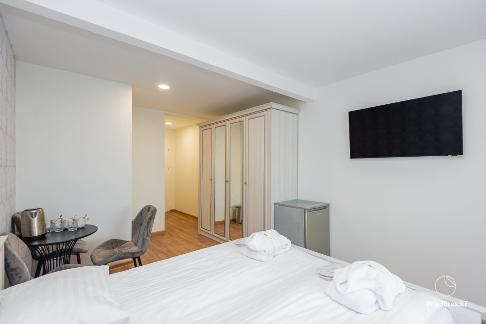 Svečių namuose yra 8-ni dviviečiai kambariai su atskirais dušais bei WC, 2 numeriai yra su dvejais miegamaisiais, jame gali apsistoti nuo 3-jų iki 5-kių asmenų. Taip pat yra pigesnių numerių cokoliniame aukšte su atskirais dušais bei WC, SMART TV, šaldytuvais su šaldymo kameromis. Turime 9-nis triviečius kambarius su atskirais dušais bei WC, SMART TV, šaldytuvais su šaldymo kameromis. Kai kuriuose kambariuose yra kondicionieriai ir balkonai.