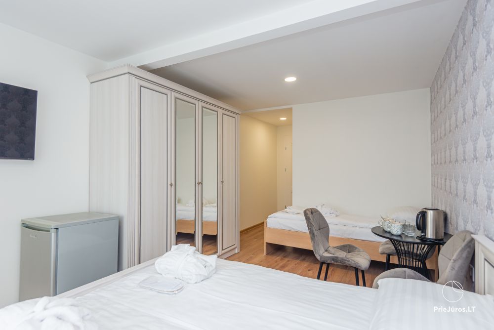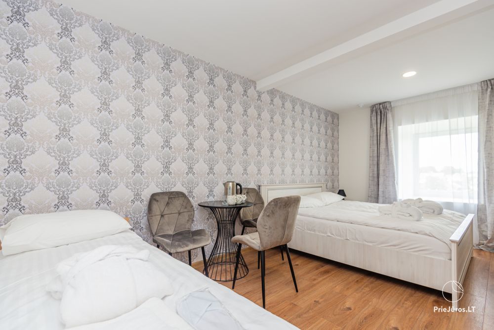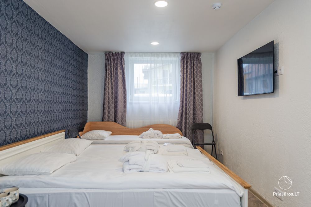 Nr. 6 Erdvus kambarys su viena dvigule lova ir viena viengule lova, su atskiru vonios kambariu, balkonu bei kondicionieriumi antrame aukšte.