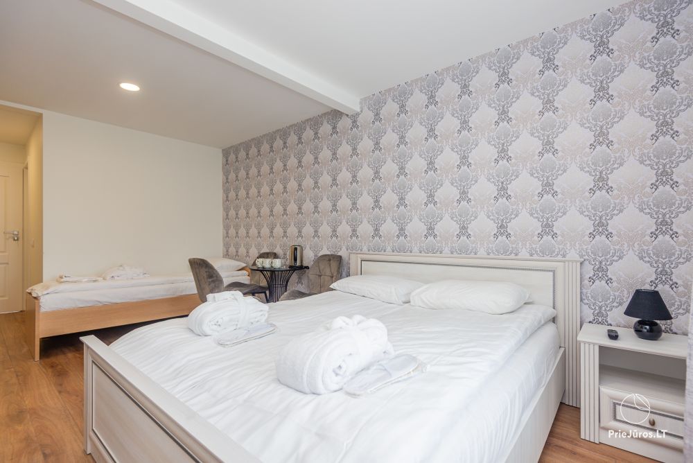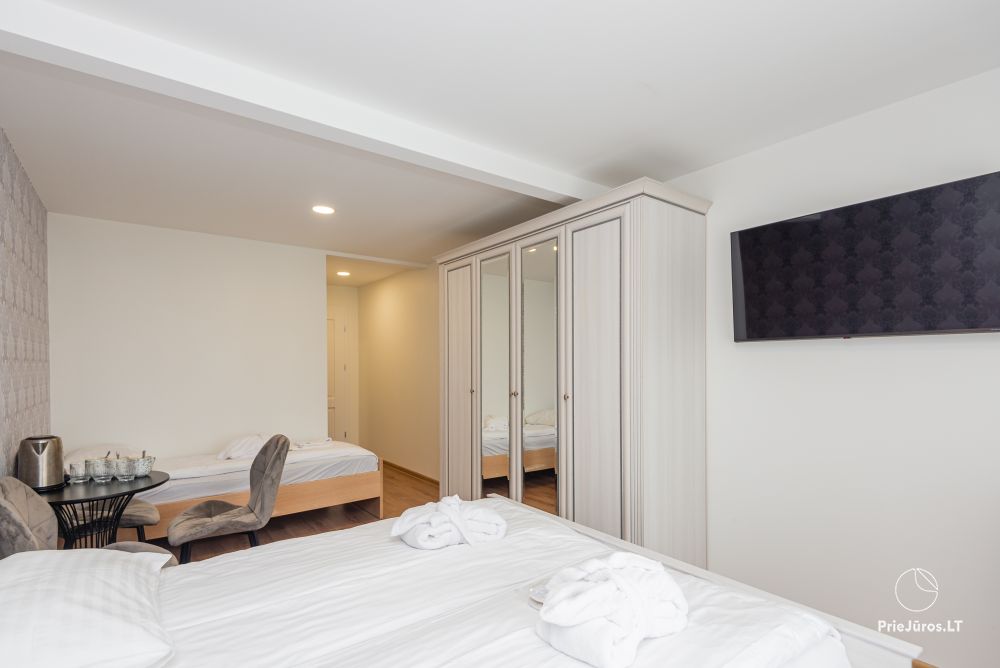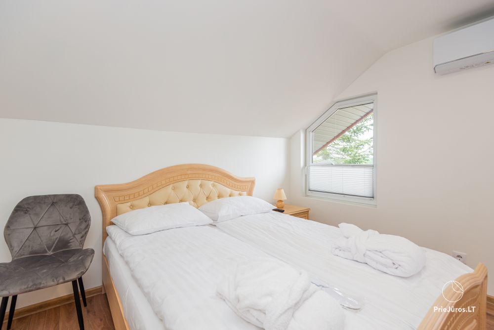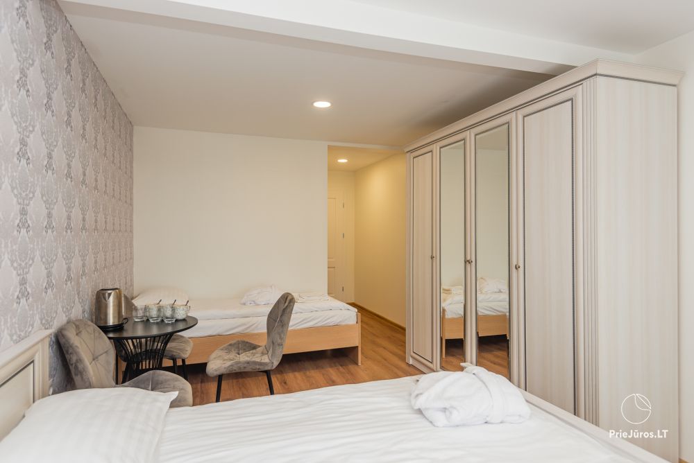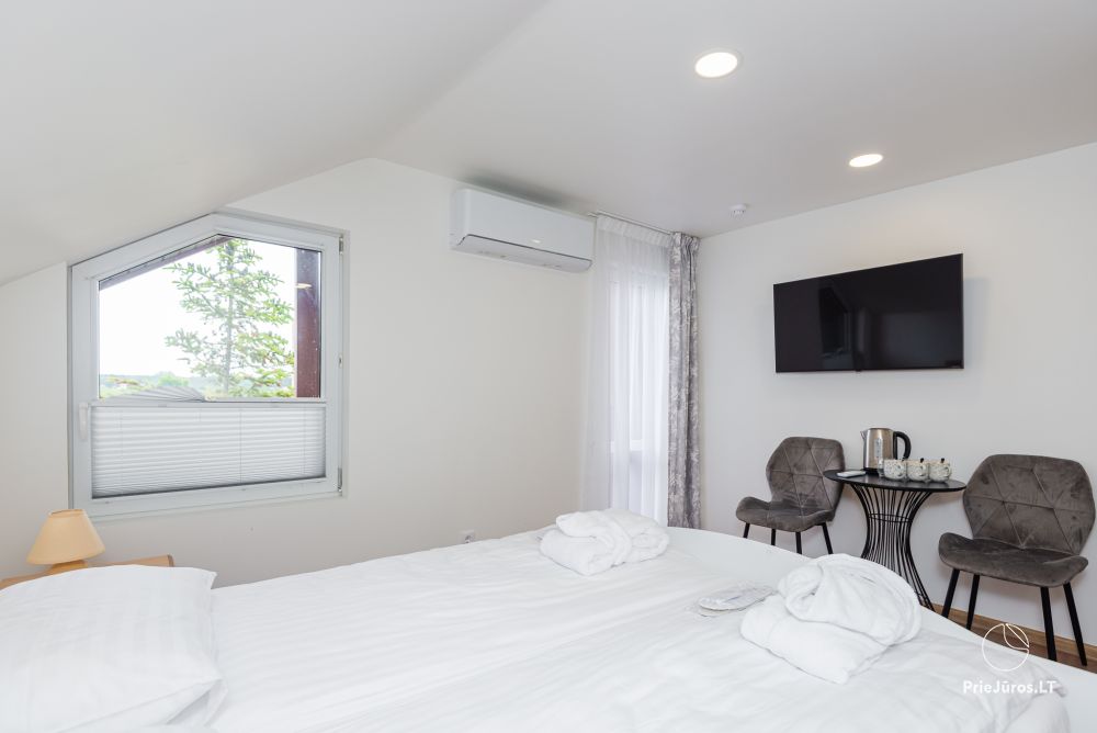 Nr. 11 Du pereinami kambariai (tarp kambarių durų nėra) su viena dvigule ir viena viengule lova, su atskiru vonios kambariu, kondicionieriumi bei balkonu palėpėje.