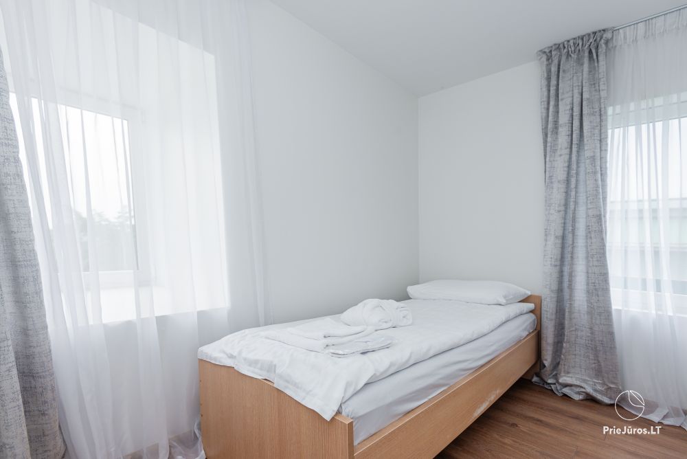 Nr. 1 Penkių viengulių lovų du pereinami kambariai (tarp kambarių durų nėra) su atskiru vonios kambariu cokoliniame aukšte.