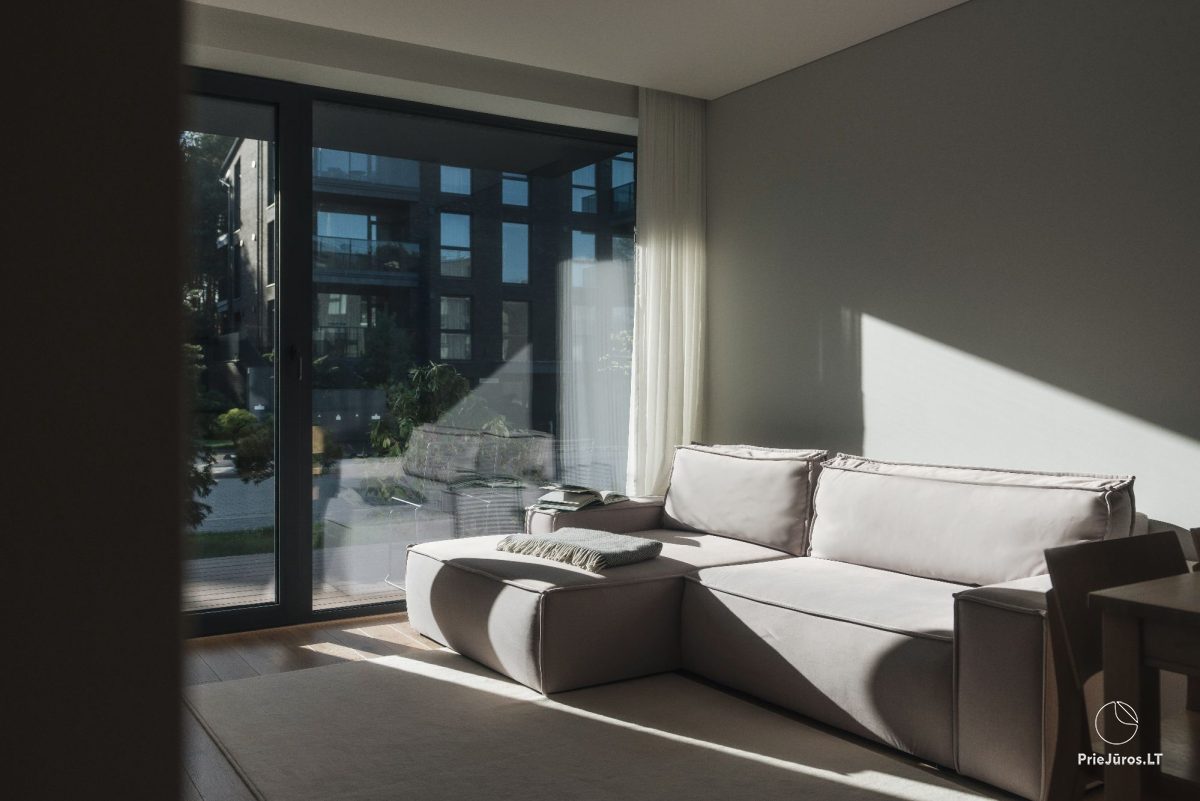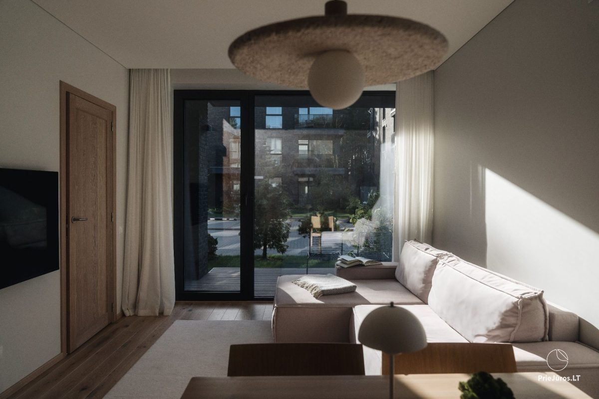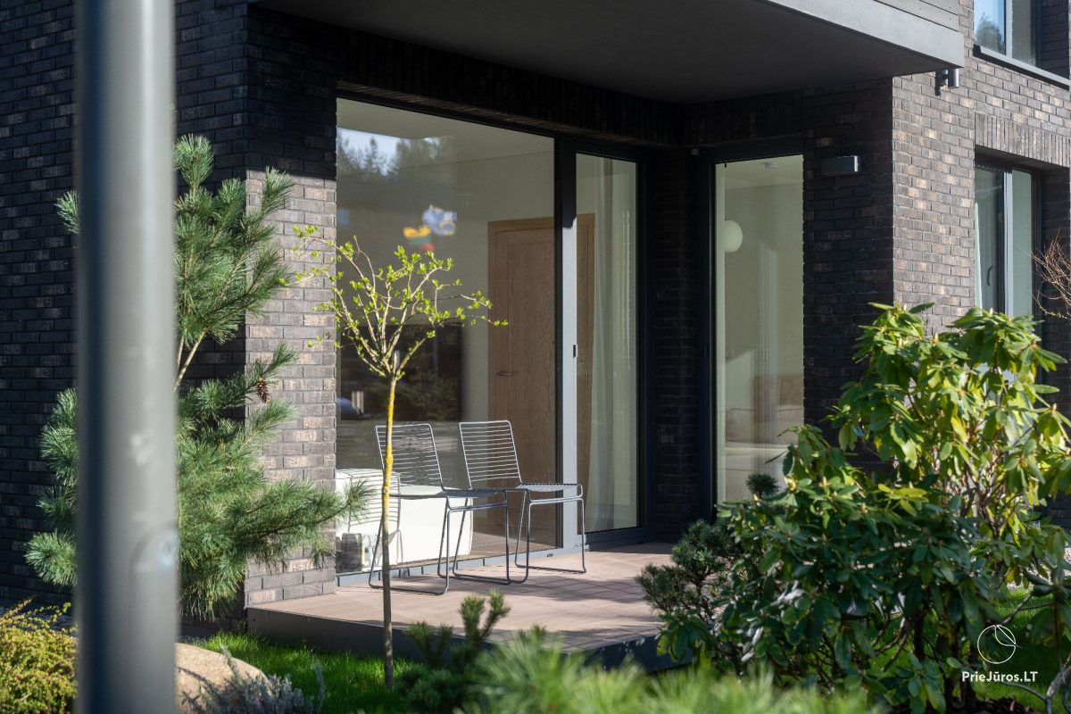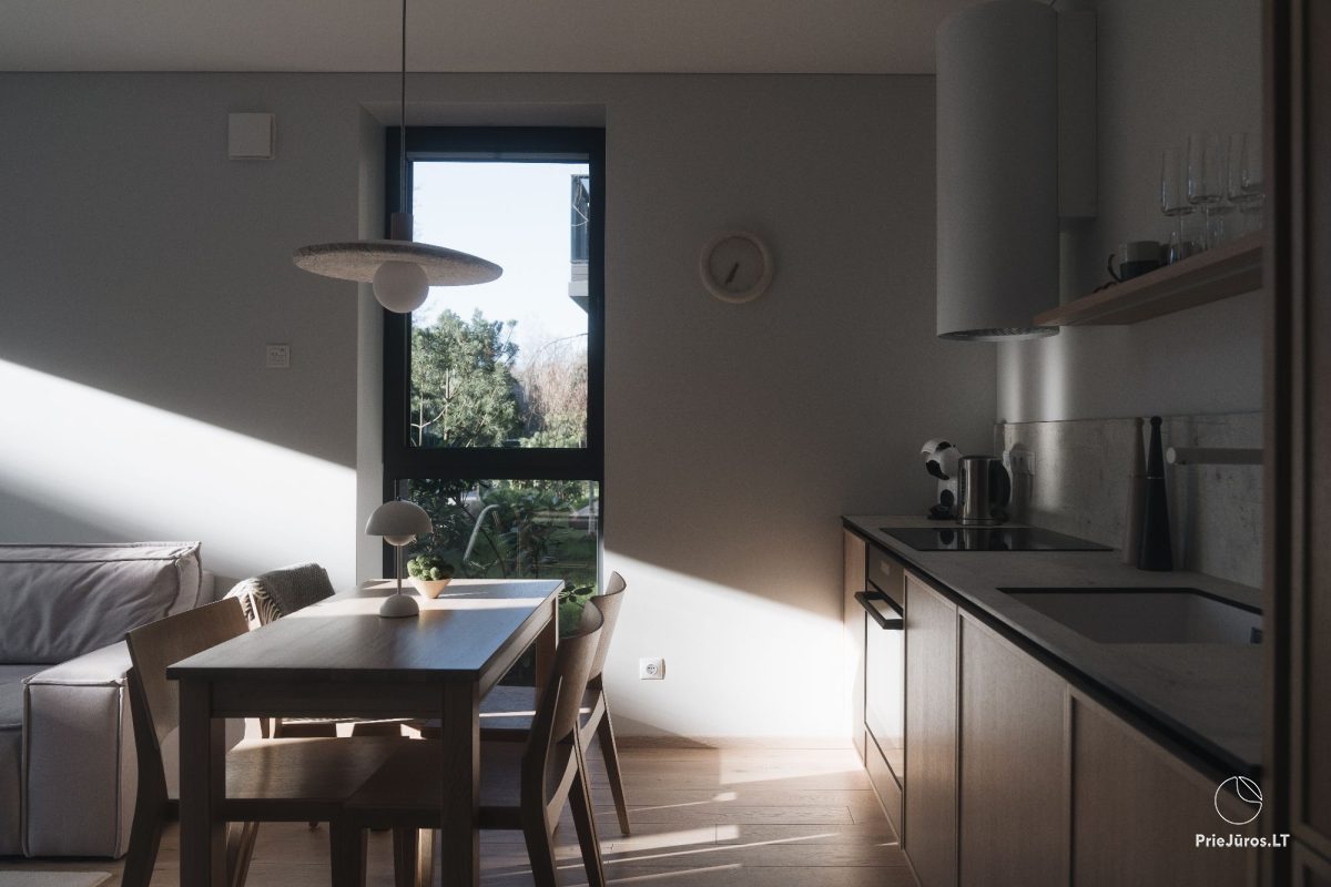 Jaukus, šviesus butas su terasa šalia pušyno Vanagupės parke.
