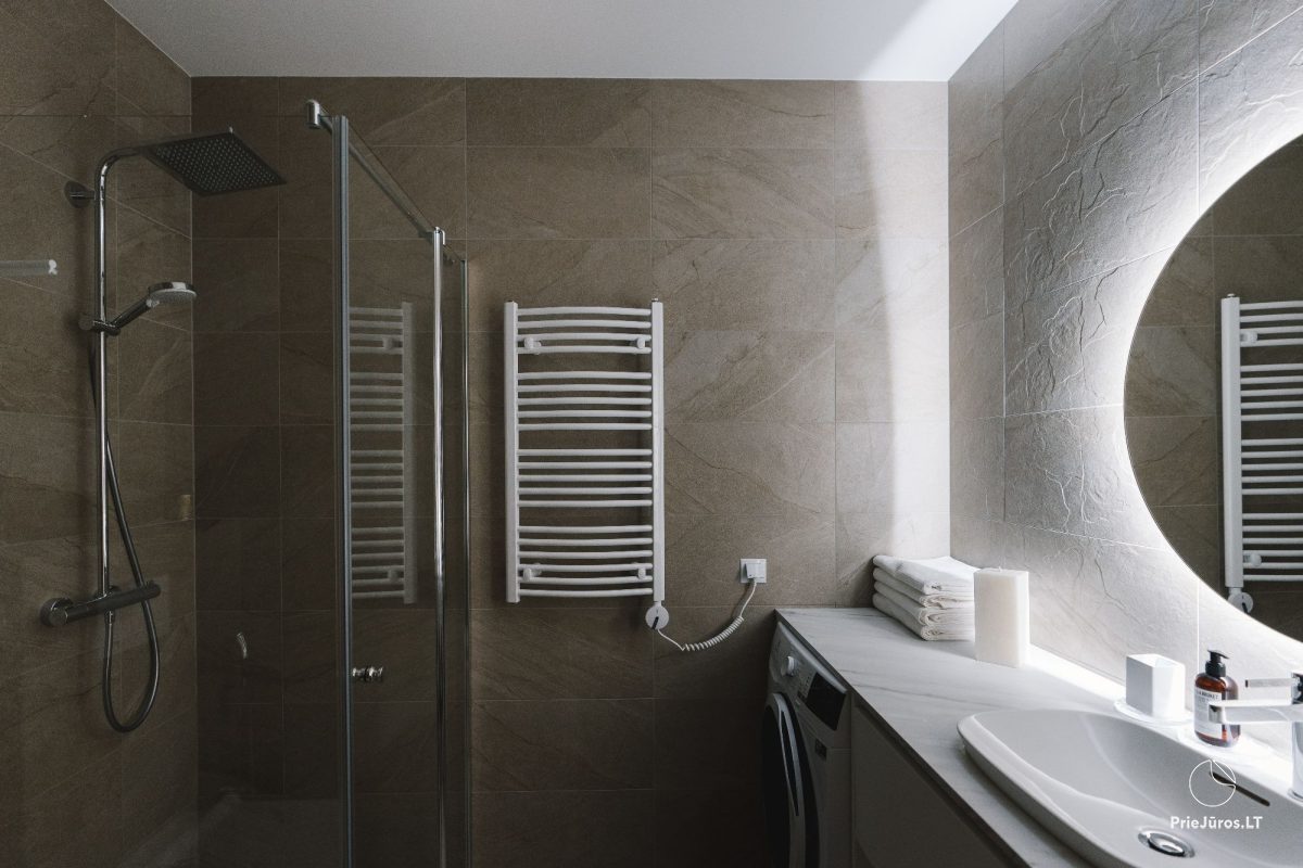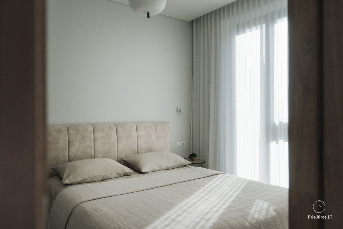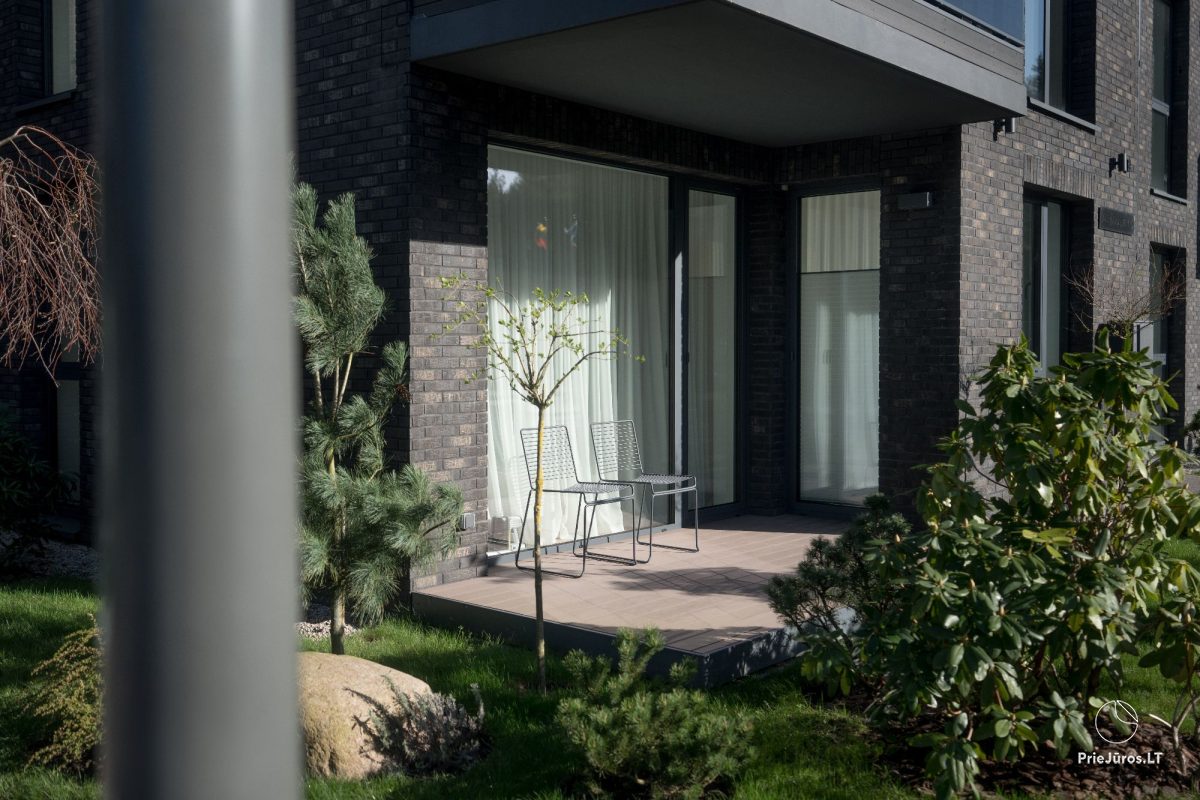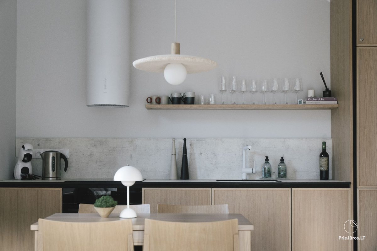 Jaukus, šviesus butas su terasa šalia pušyno Vanagupės parke.
