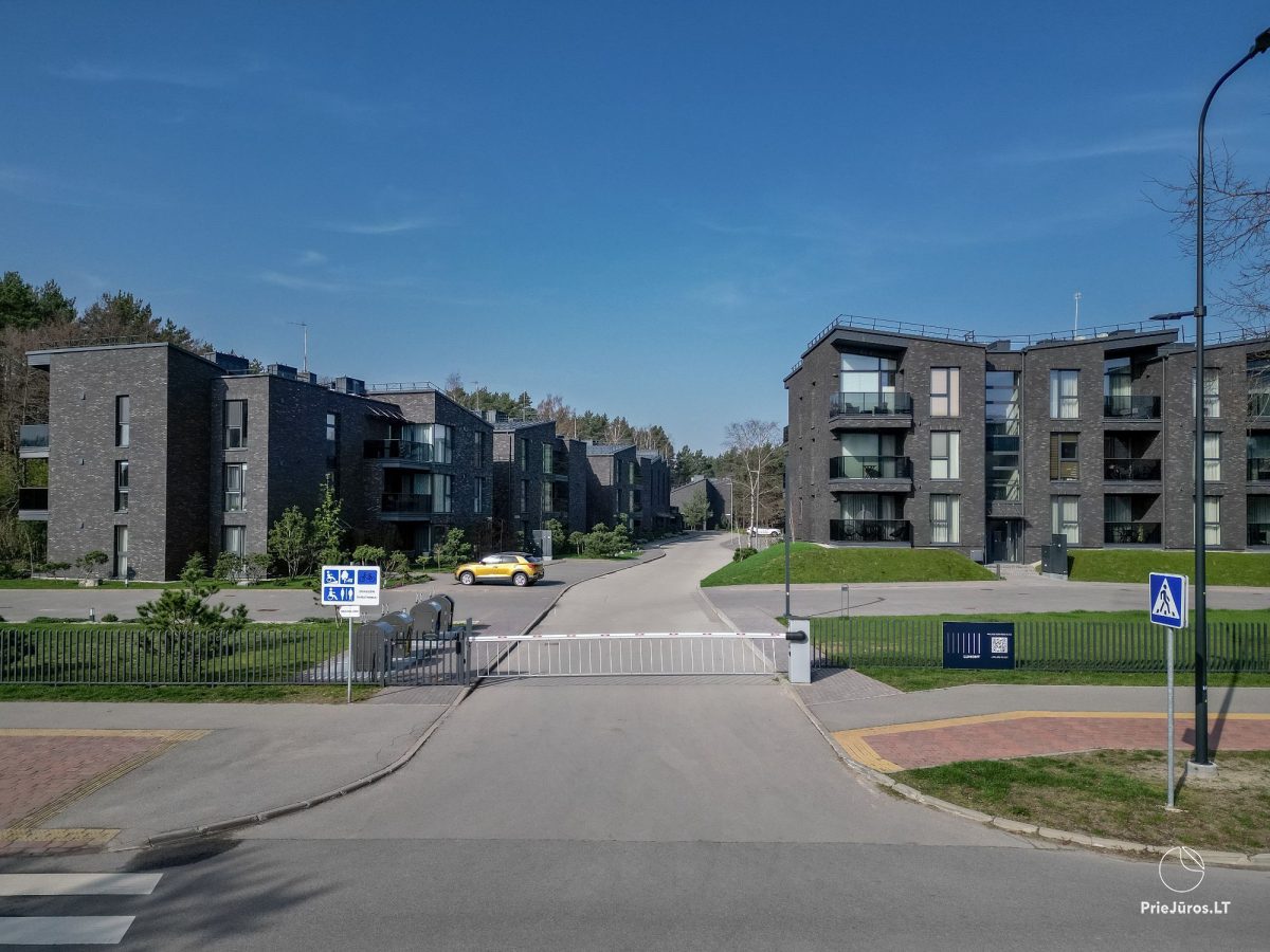 Nuomojamas nedidelis, tačiau itin jaukus ir šviesus butas pirmame aukšte su privačia terasa. Butas yra ramioje, aptvertoje ir prižiūrėtoje gyvenvietėje, apsuptoje pušyno – vos keli žingsniai iki miško takelių, kuriais pasieksite jūrą.